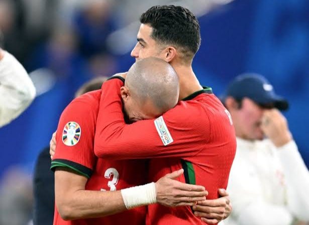 Ekspresi Ronaldo dan Pepe usai Gagal ke Semifinal Euro 2024 (Dok. Okezone Bola)
