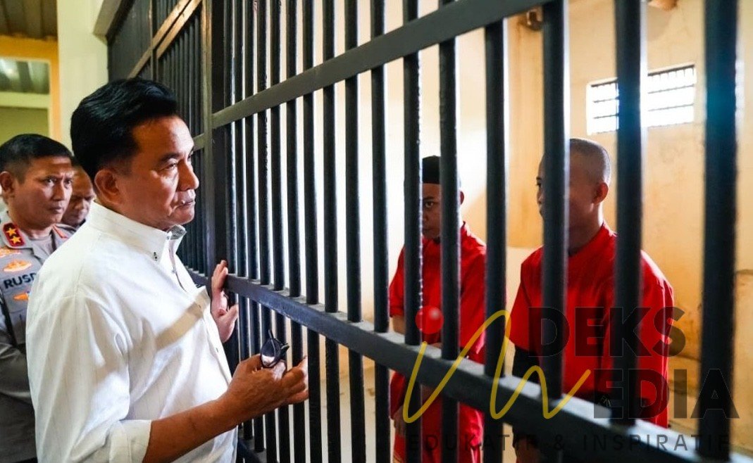 Menko Kumham Imipas Yusril Ihza Mahendra jengguk tahanan di Polda Sulsel. Mereka merupakan para tersangka pembakaran gedung DPRD Sulsel. (foto: instagram @Kumham.imipas)